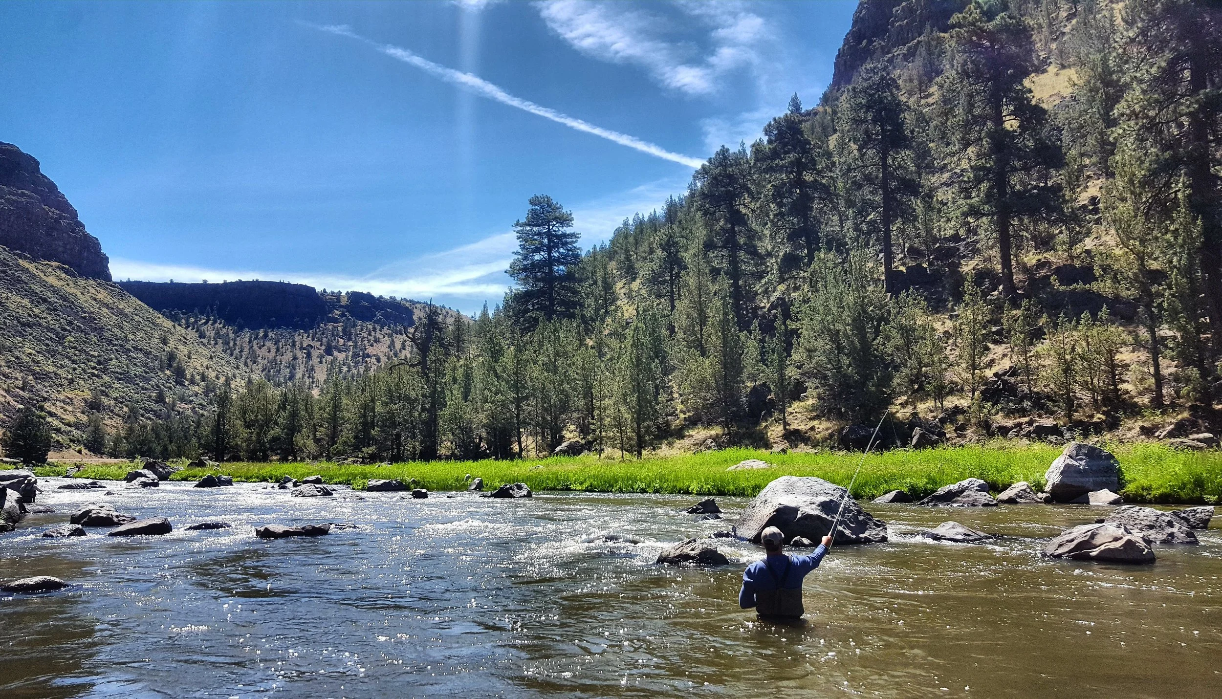 The Crooked River begins high in the Ochoco Mountains. It flows west for 125 miles where it joins up with the Deschutes River at Lake Billy Chinook Reservoir. Along it’s journey the Crooked is impounded by Arthur A. Bowman Dam forming Prineville reservoir, about 20 miles south of the town of Prineville and 30 miles east of Bend. The waters below Bowman Dam have a balanced ecosystem, owing to it’s stable, nutrient rich water, with consistently cool temperatures. This supports a large population of fish, making this one of the best fisheries in all of Central Oregon. With it’s calm flows, high fish count, large hatches and easy access, the crooked makes for a great fishing environment for all anglers and skill levels. I like to refer to it as our “backyard playground”. This is a great place for beginners, fishing with family and kids, experienced anglers who like lots of action, or if you want to get out on a half day and still make an afternoon tee time!